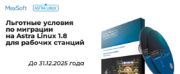 Спешите обновить рабочие станции до Astra Linux 1.8 по льготным ценам: получите скидку на миграцию и год технической поддержки в подарок, пока действует специальное предложение до конца 2025 года — это поможет избежать штрафов и обеспечит соответствие нов