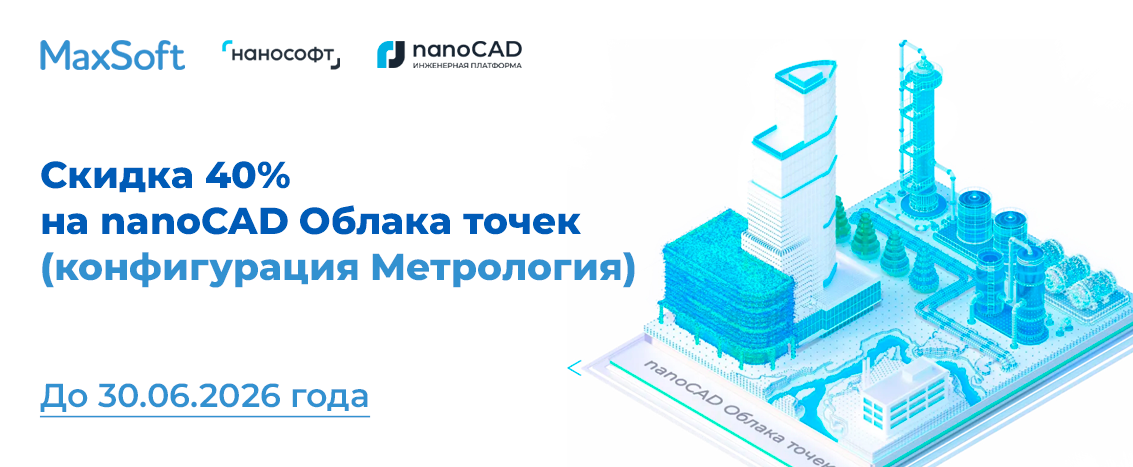 Скидка 40% на приобретение лицензий продукта "nanoCAD Облака точек" (конфигурация Метрология)1 декабря 2025 - 31 марта 2026