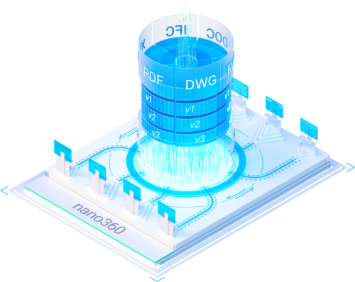 nano360 — облачная среда общих данных для хранения и обмена информацией по проекту. Позволяет работать с файлами разных форматов: DWG, IFC, PDF, DOCX и др