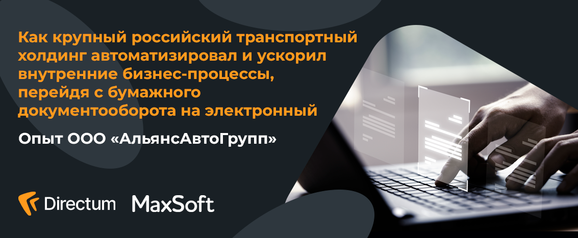 Компания MaxSoft успешно внедрила электронный документооборот Directum RX для компании ООО «АльянсАвтоГрупп» - содружество самодостаточных организаций, предоставляющих комплекс коммерческих услуг по подготовке и обеспечению процесса производства.