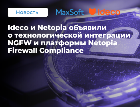 Компании Ideco, разработчик межсетевых экранов нового поколения (NGFW), и Netopia, вендор платформы Netopia Firewall Compliance, сообщили о технологической интеграции своих решений, направленную на автоматизацию контроля правил доступа, повышение видимости сетевой инфраструктуры и выполнение требований регуляторов в крупных корпоративных IT-средах.