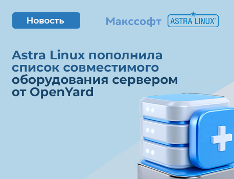 «Группа Астра» и компания OpenYard объявляют о полной совместимости операционной системы Astra Linux 1.8 с серверным оборудованием RS202A на базе процессоров AMD EPYC пятого поколения. По итогам испытаний технологическому партнеру выдан сертификат Ready for Astra.