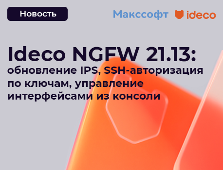 Ideco NGFW 21.13: обновление IPS, SSH-авторизация по ключам, управление интерфейсами из консоли