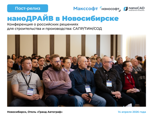 14 апреля в Новосибирске прошел первый наноДРАЙВ в 2026 году от компании «Нанософт», ведущего разработчика инженерного ПО. Компания «Макссофт» — ключевой партнёр в регионе — выступила в качестве соорганизатора.